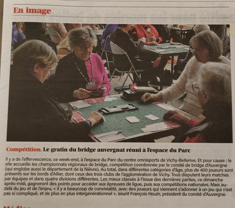 Le week-end des 18 et 19 janvier, le comité a réuni les divisions D6 à D2 des interclubs au Palais des Lacs de Vichy.